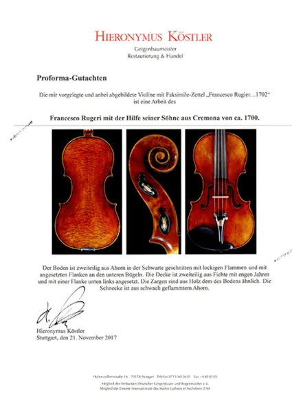 Sehr feine und bedeutende italienische Violine von Francesco Rugeri *1645-1700, Cremona 1702 mit Originaletikett